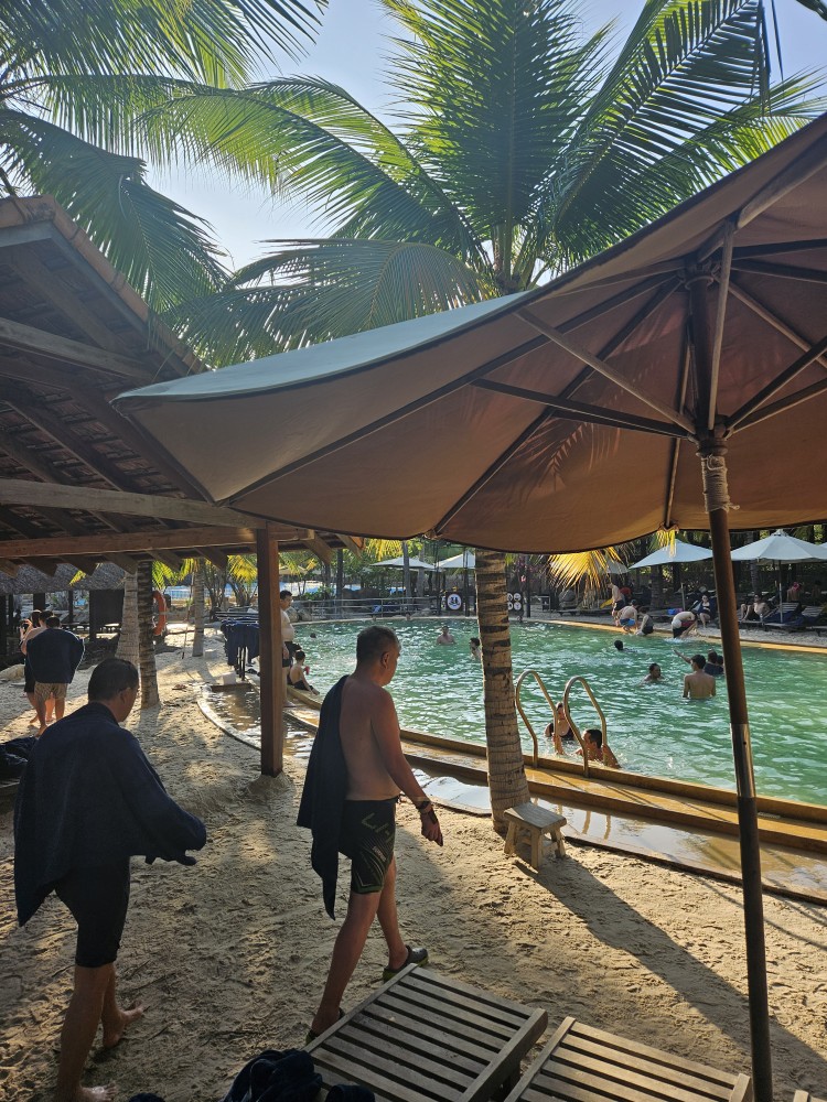자연친화적인 머드온천으로 피부미용에 좋은 머드스파 후 미네랄수영장에서 자유시간을 갖는다.