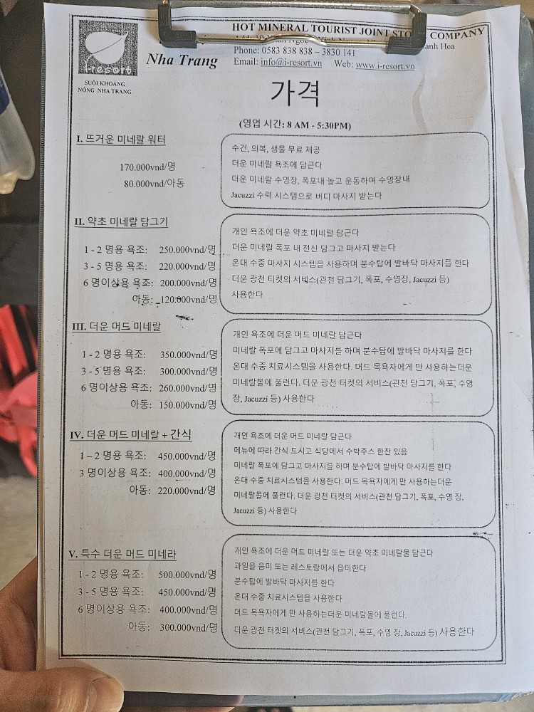 나트랑 아이리조트 머드스파 이용방법이다.