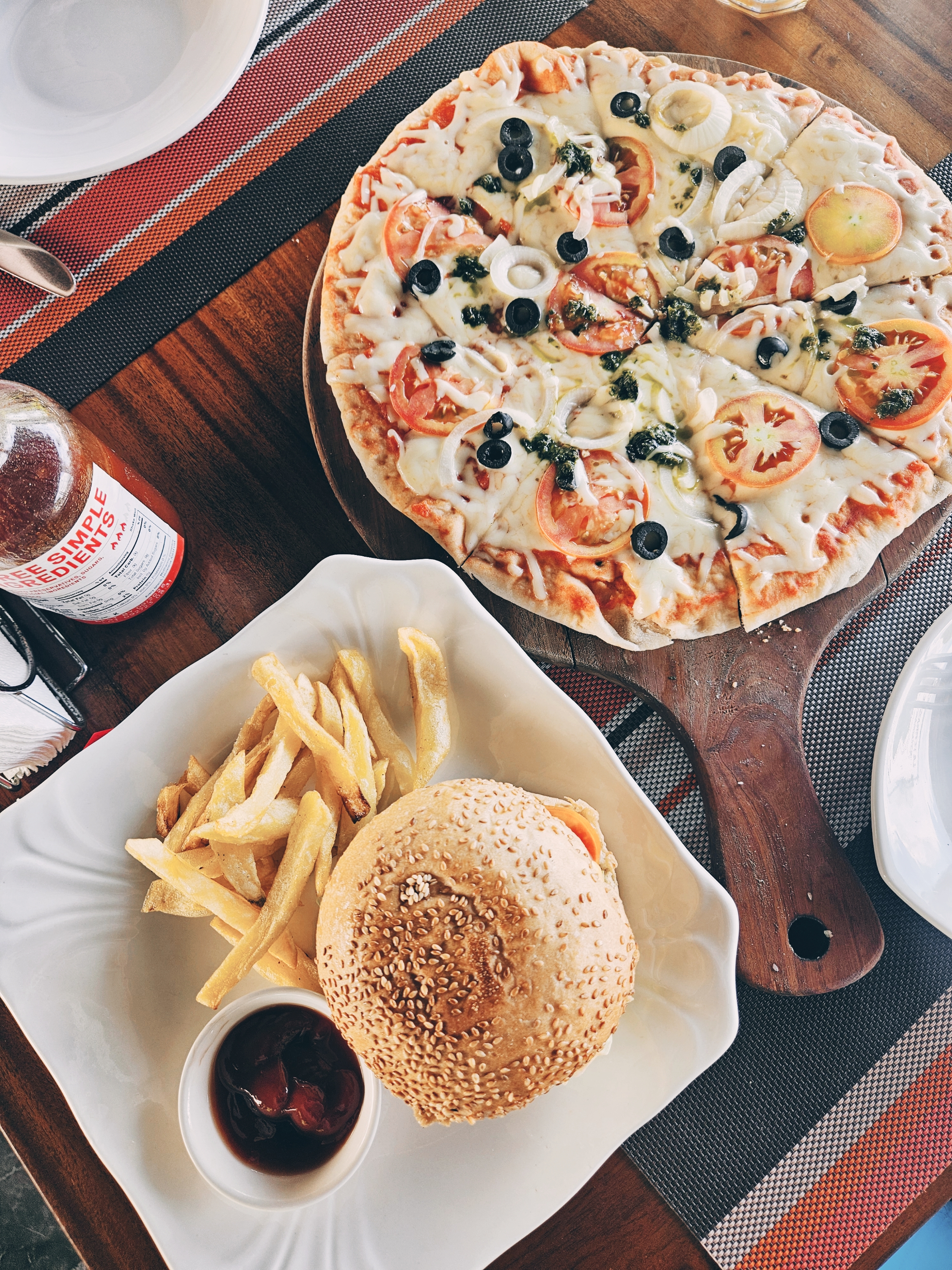 우리는 피자와 버거를 주문해서 먹었는데